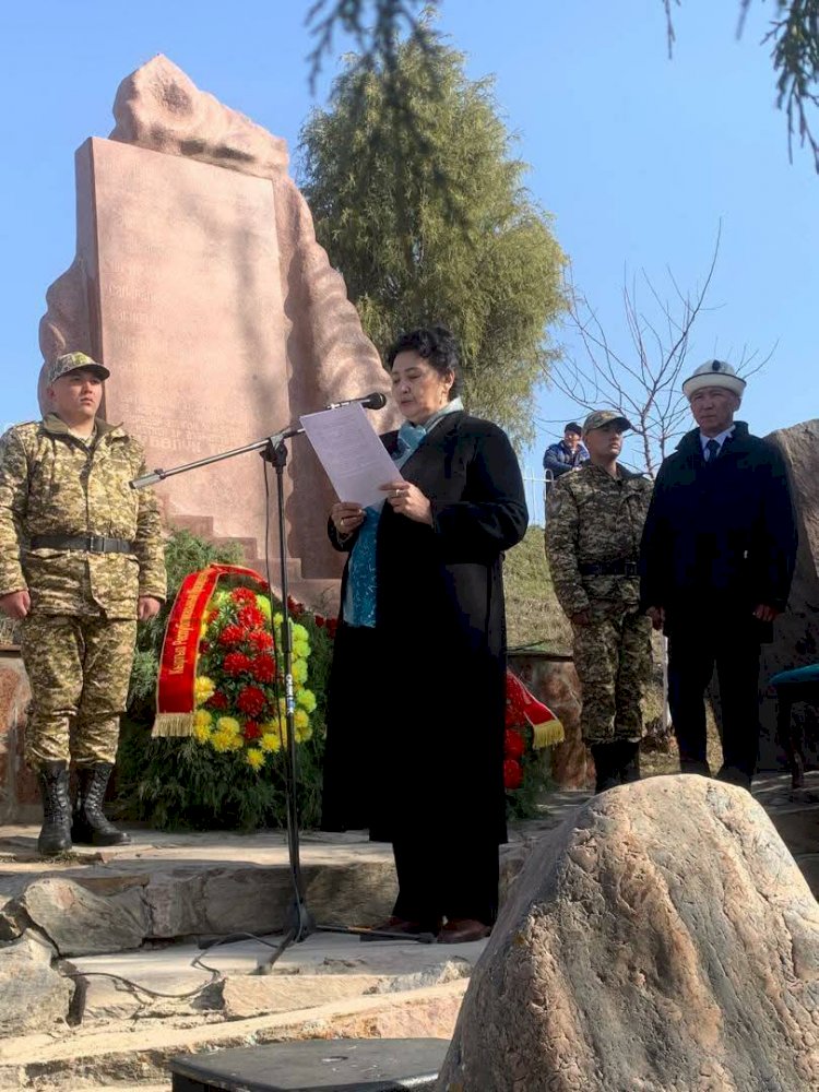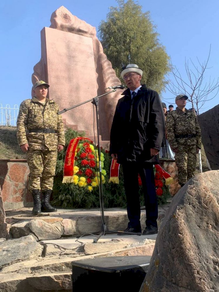 Эскерүү иш-чарасынын жүрүшүндө маркумдардын элесине арналып орнотулган эстеликке гүл чамбарлар коюлуп, куран окулду.