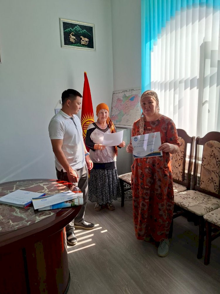 Багыш айыл аймагында «Аялдар коомдо күч» долбоорунун алкагында 60 кыз-келин улуттук кол өнөрчүлүк боюнча билим алды. Айыл өкмөт башчысы Нурсултан Түгөйбеков окутуунун жыйынтыгында активдүү катышкан 10 аялга сертификат тапшырды.