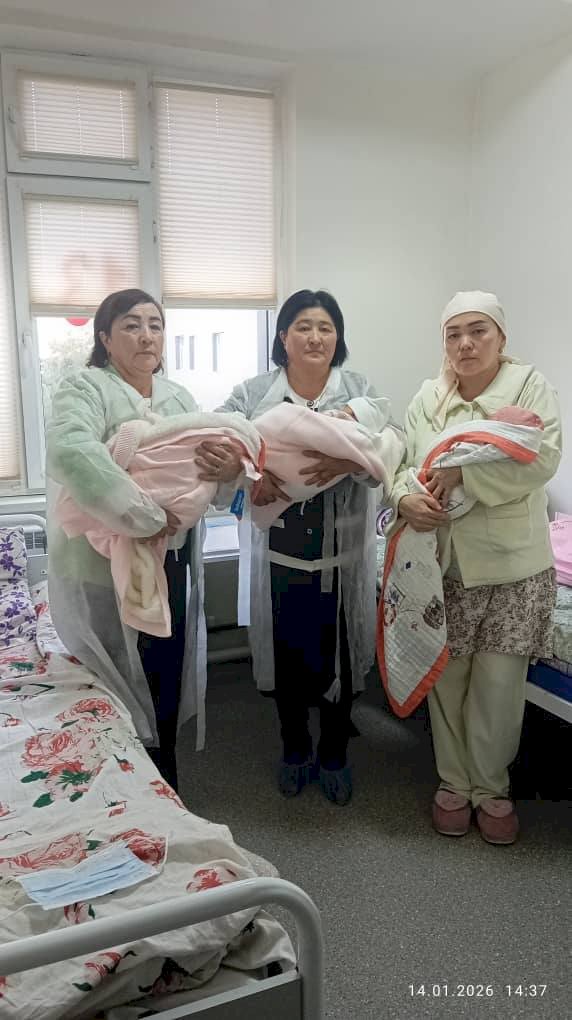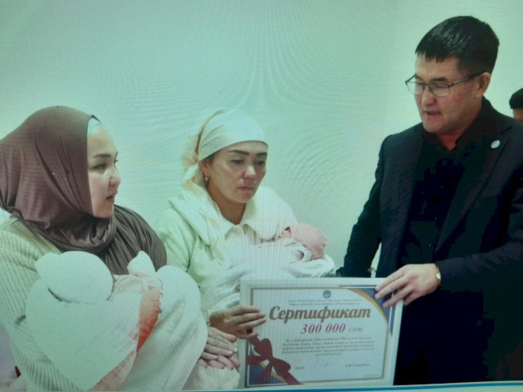 “Биздин айыл аймактын Айгыр-Жал айылынын 39 жаштагы тургуну Назгүл Жээнтаева үч эм кыздарды төрөгөн. Кечээ 14-январь күнү район акими Алтынбек Сеңирбаев баш болуп кабар алып кайтканбыз. Жаш үй-бүлөгө сүйүнчү катары райондук мамлекеттик администрациясынын атынан 300 миң сомдук, ал эми Каныш-Кыя айыл аймагынын атынан 150 миң сомдук сертификаттарды тапшырышып, наристелерге керектүү буюмдарды алып бердик. Мындан сырткары ымыркайлар бүгүн төрөт үйүнөн чыгарылат экен, мындан улам алар торолуп алганча Ош шаарында убактынчалуу дарыгерлердин көзөмөлүндө болушу үчүн батир ижарага алынды, анын ижара акысын убактынчалуу биз жергиликтүү бюджеттен кол кабыш кылып турабыз.