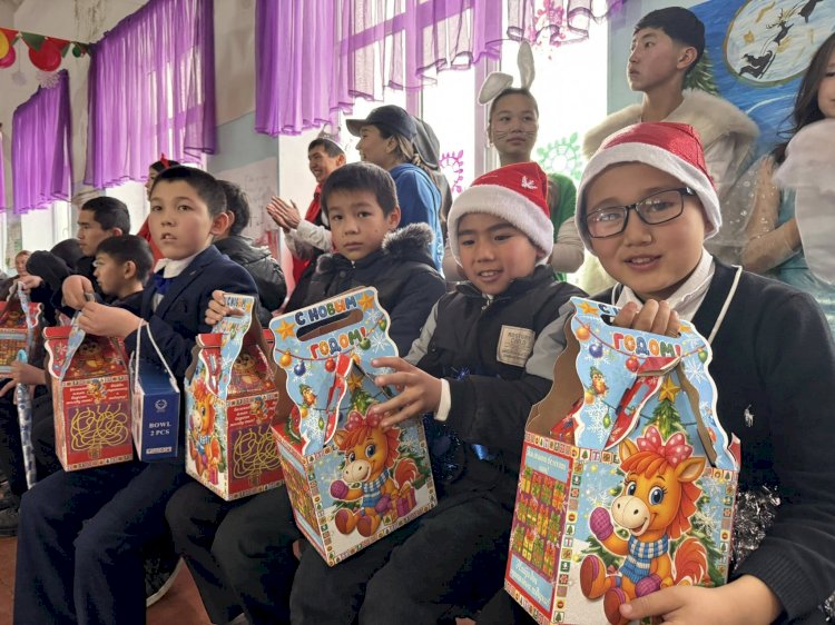 Сузактын Багыш айыл аймагында жаңы жыл майрамын утурлай 80 балага белектер тапшырылды (сүрөт баян)