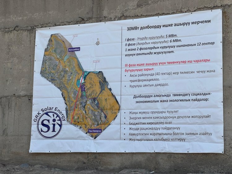 "Күн электр станциясы курулуп жаткан аймакта мурда көмүр шахталары жайгашкан. Учурда аталган жерлер толук калыбына келтирилип, өндүрүштүк жана коммерциялык пайдаланууга ылайыкташтырылды. Курулуш иштери экологиялык талаптар сакталган шартта, калыбына келтирилген аймактарда жүргүзүлүүдө. Адистердин алдын ала текшерүүлөрүнүн жыйынтыгы менен бул жер күн электр станциясы үчүн эң эффективдүү аймак катары табылды. Станцияны этап-этабы менен ишке киргизилип, быйыл жыл аягына чейин 5 мегаваттык электр энергиясын өндүрүү күтүлүүдө. Уникалдуу долбоордун жалпы кубаттуулугу 30 мегаватка эсептелген",-деди ал.